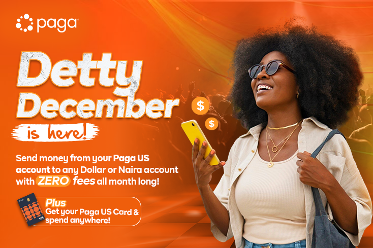 Coming home for Detty December? Enjoy smooth payments every day with your Paga US account. Transfer to any bank instantly. Don’t miss out, get started now.